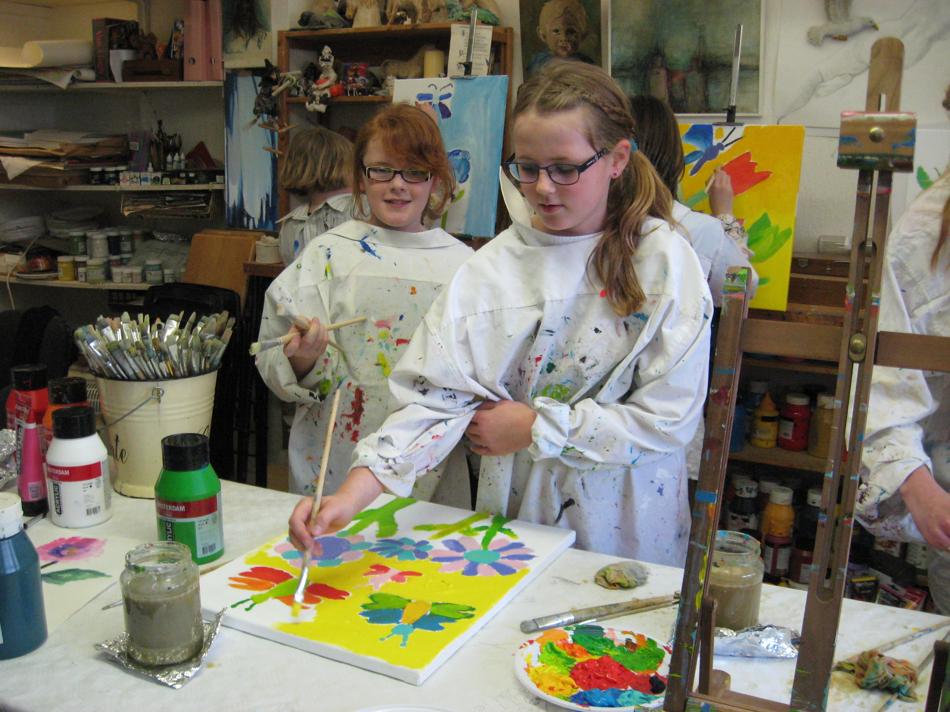 Eerst een eigen schilderij maken met het thema ‘lente, bloemen en vlinders’.